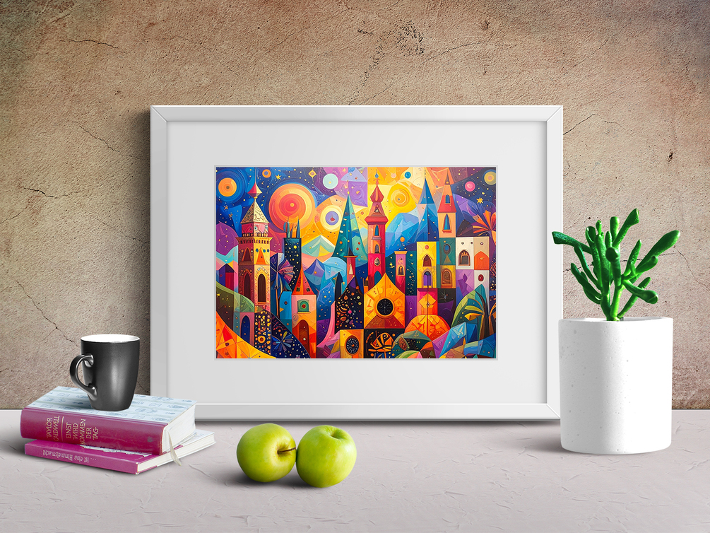 ✅ Vibrant, abstract, and artistic composition inspired by Mary Blair
